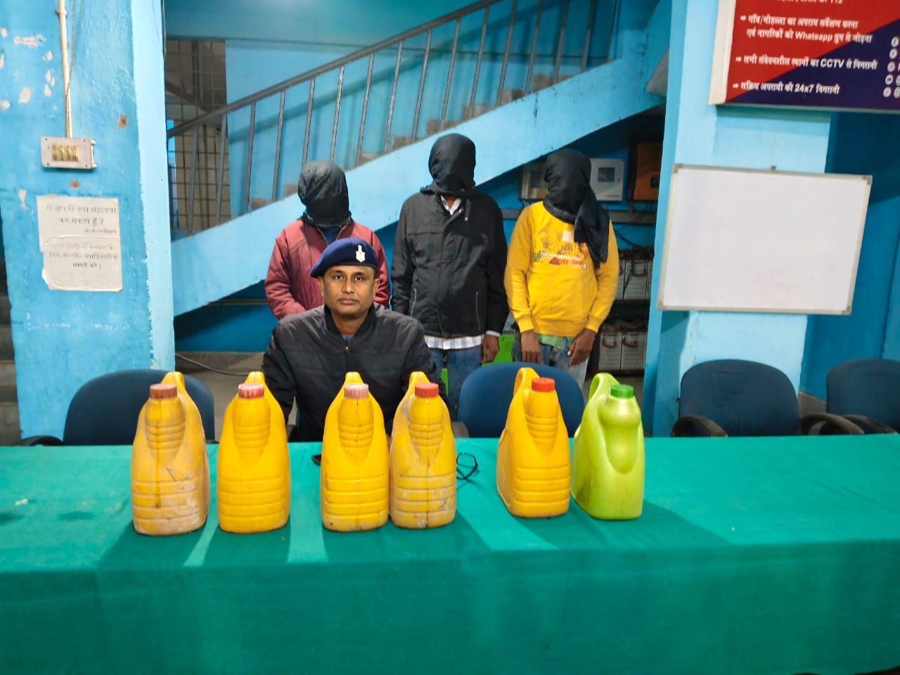 शराबबंदी कानून को सख्ती से लागू करने के तहत लौरिया पुलिस ने मंगलवार की रात्रि विशेष अभियान चलाकर बड़ी सफलता हासिल की। गुप्त सूचना के आधार पर सिसवनिया धागड़टोली में की गई छापेमारी के दौरान पुलिस ने 30 लीटर देसी चुलाई शराब बरामद की है। बरामदगी स्थल से तीन व्यक्तियों को गिरफ्तार भी किया गया। पुलिस ने बताया कि देसी शराब की बिक्री की सूचना मिलते ही टीम ने तत्काल कार्रवाई की। छापेमारी के दौरान सिसवनिया धागड़टोली निवासी विश्वनाथ धागड़ के पुत्र नरेश धागड़ को अवैध शराब के साथ रंगे हाथों पकड़ लिया गया। वहीं मौके से दो अन्य व्यक्तियों को भी गिरफ्तार किया गया, जिनमें कटैया पंचायत के कुट्टी कटैया गांव निवासी हिरा सिंह के 36 वर्षीय पुत्र अरविंद सिंह तथा सिसवनिया गांव निवासी सतन सिंह के 45 वर्षीय पुत्र राजकुमार सिंह शामिल हैं। लौरिया थानाध्यक्ष रमेश कुमार शर्मा ने बताया कि तीनों आरोपियों के खिलाफ शराबबंदी अधिनियम के तहत प्राथमिकी दर्ज कर उन्हें न्यायिक हिरासत में बेतिया भेज दिया गया है। उन्होंने कहा कि क्षेत्र में अवैध शराब के निर्माण और बिक्री पर अंकुश लगाने के लिए लगातार विशेष अभियान चलाया जा रहा है। साथ ही लोगों से अपील की गई है कि किसी भी संदिग्ध गतिविधि की सूचना तत्काल थाना प्रशासन को दें, ताकि समय रहते कार्रवाई की जा सके।