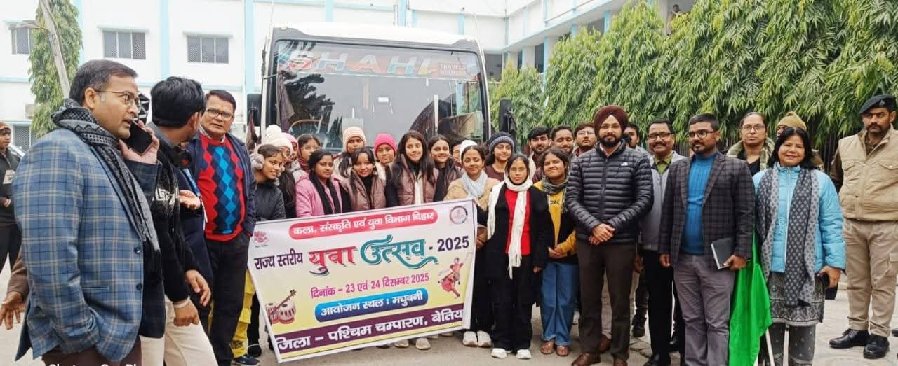 मधुबनी जिले में आयोजित होने वाले राज्यस्तरीय युवा उत्सव–2025 में भाग लेने के लिए पश्चिम चम्पारण जिले की चयनित युवा कलाकारों की टीम मंगलवार को रवाना हुई। समाहरणालय परिसर में आयोजित कार्यक्रम के दौरान जिला पदाधिकारी श्री तरनजोत सिंह ने हरी झंडी दिखाकर टीम को उत्साहपूर्वक रवाना किया।इस अवसर पर जिला पदाधिकारी ने प्रतिभागियों को संबोधित करते हुए कहा कि राज्यस्तरीय युवा उत्सव युवाओं की कला, संस्कृति एवं रचनात्मकता को मंच प्रदान करने का एक महत्वपूर्ण माध्यम है। उन्होंने सभी प्रतिभागियों को शुभकामनाएं देते हुए आशा जताई कि वे उत्कृष्ट प्रदर्शन कर पश्चिम चम्पारण जिले का नाम राज्य स्तर पर गौरवान्वित करेंगे।