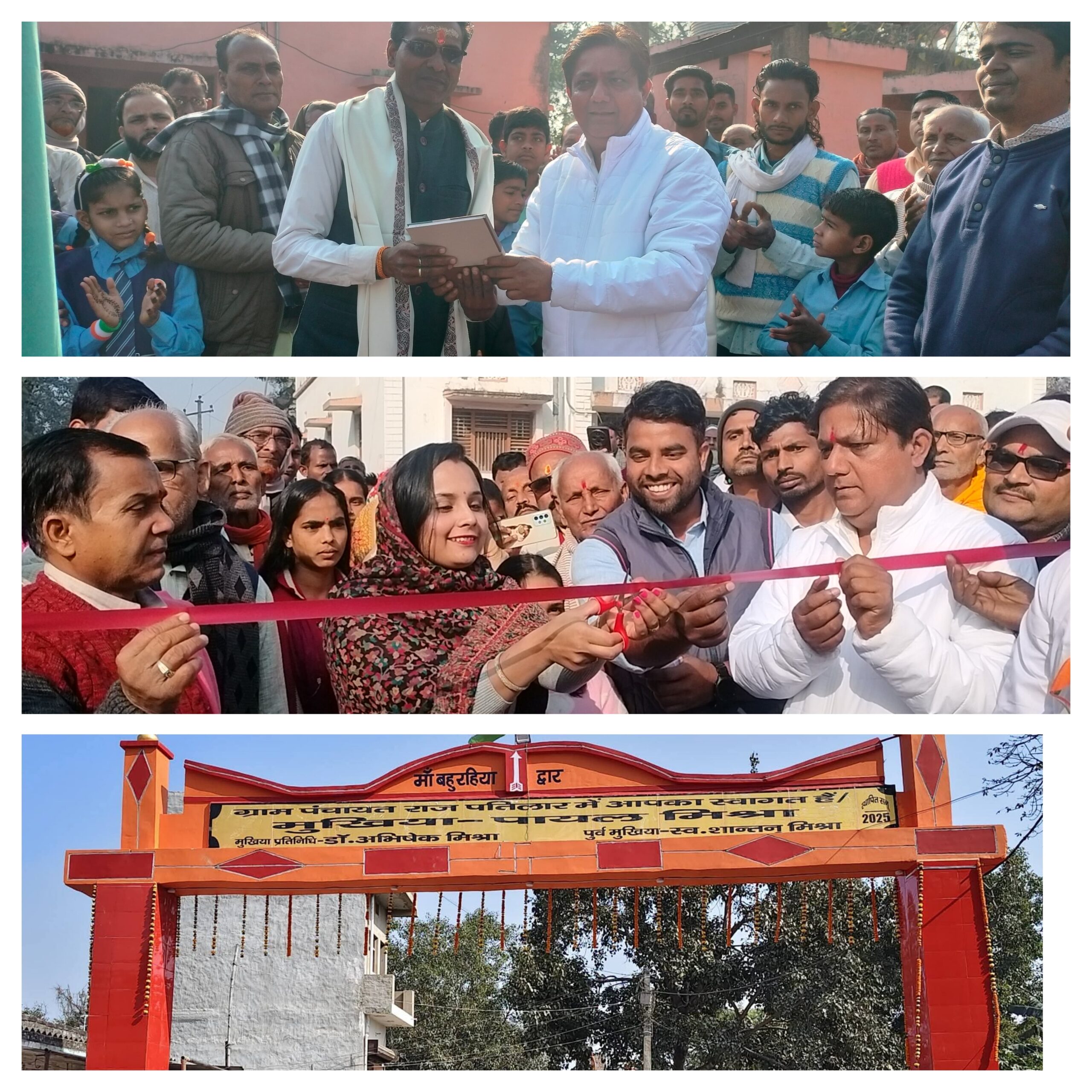 चौतरवा।26 जनवरी गणतंत्र दिवस के शुभ अवसर पर पतिलार पंचायत द्वार का उद्घाटन पंचायत की माननीय मुखिया पायल मिश्र एवं मुखिया प्रतिनिधि डॉ. अभिषेक मिश्र के द्वारा फीता काटकर विधिवत रूप से किया गया।उद्घाटन अवसर पर पंडित द्वारा वैदिक मंत्रोच्चारण किया गया, जिससे पूरा वातावरण राष्ट्रभक्ति और आध्यात्मिक ऊर्जा से सराबोर हो गया।इस मौके पर पंचायत के लिए गौरव का क्षण तब आया जब पंचायत के तीन होनहार बेटों का चयन देश सेवा के लिए भारतीय सेना में हुआ। मुखिया प्रतिनिधि डॉ. अभिषेक मिश्र के द्वारा तीनों नवचयनित जवानों को डायरी एवं पेन भेंट कर सम्मानित किया गया।अपने संबोधन में मुखिया प्रतिनिधि डॉ. अभिषेक मिश्र ने कहा कि“इन युवाओं ने अपने कठिन परिश्रम,अनुशासन और देशभक्ति के जज़्बे से यह सिद्ध कर दिया है कि पंचायत के बेटे भी देश की रक्षा में अग्रणी भूमिका निभा सकते हैं। यह पूरे पंचायत के लिए गर्व की बात है। ये युवा आने वाली पीढ़ी के लिए प्रेरणास्रोत हैं।”इस कार्यक्रम में दैनिक जागरण मंच के अध्यक्ष अभय कुमार उपाध्याय, कृष्णा पासवान, नंदन कुमार सहित पंचायत संघ एवं पंचायत के सभी प्रतिनिधि उपस्थित रहे। सभी ने कार्यक्रम की सराहना करते हुए नवचयनित जवानों को शुभकामनाएं दीं।कार्यक्रम में बड़ी संख्या में ग्रामीण मौजूद रहे। समारोह का समापन राष्ट्रगान एवं देशभक्ति नारों के साथ किया गया।